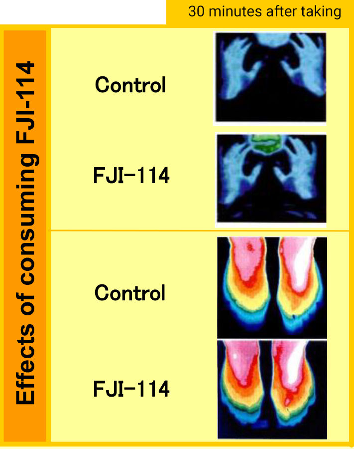 35 minutes after taking FJI-114 0.5g, cold stress test was conducted, and subsequent temperature rise of the skin was measured using thermography.