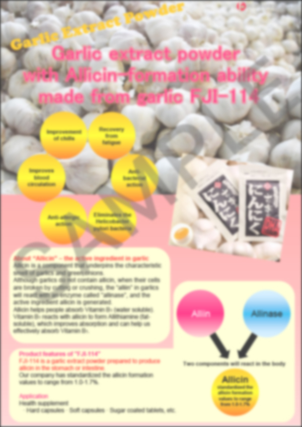 FJI-114 is a garlic extract powder designed to produce Allicin in internal body of stomach.